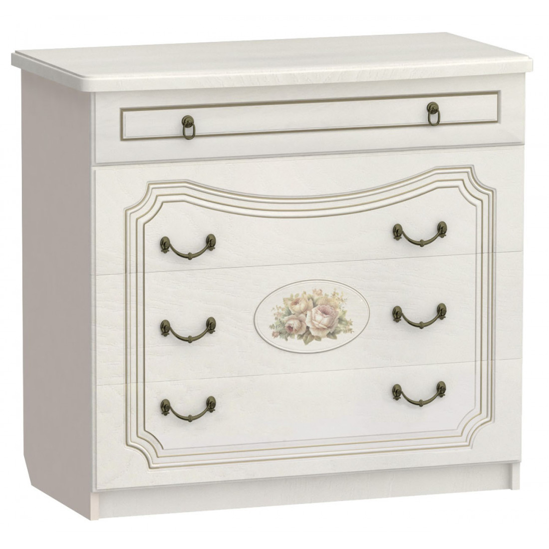 Комод для спальни Верона отлично подойдет для хранения белья и одежды. Вместительная модель оснащена тремя широкими выдвижными ящиками и одним узким. Модель украшена элегантным тиснением.