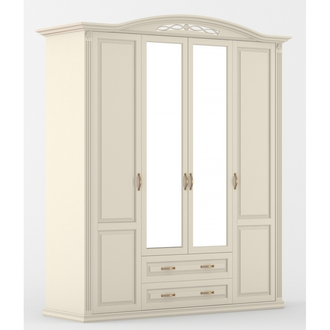 Четырехстворчатый шкаф для одежды с зеркалом Тиффани 4D2S крем вудлайн