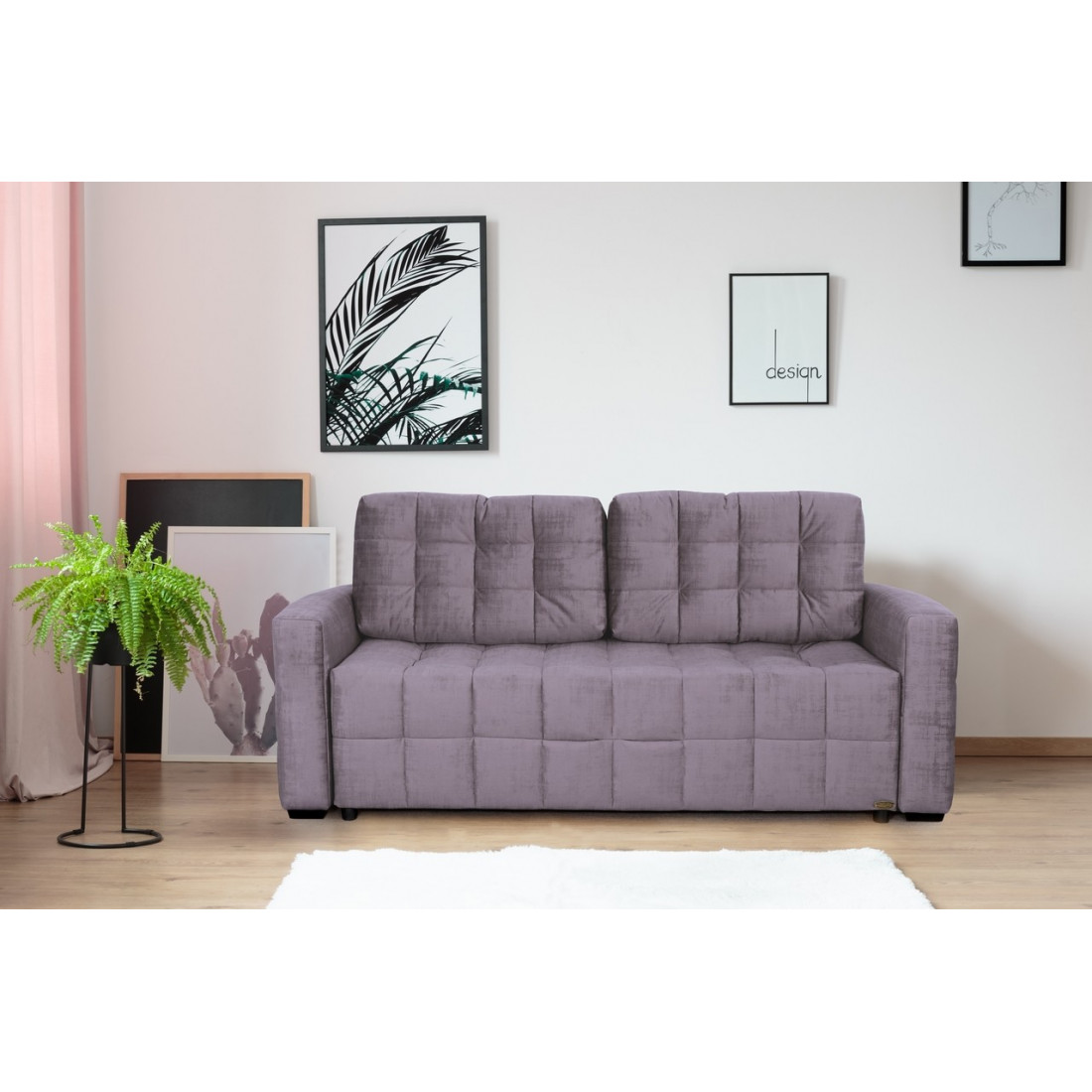В основании дивана - металлокаркас. Такая конструкция выдерживает большие нагрузки, сохраняя первоначальную форму.