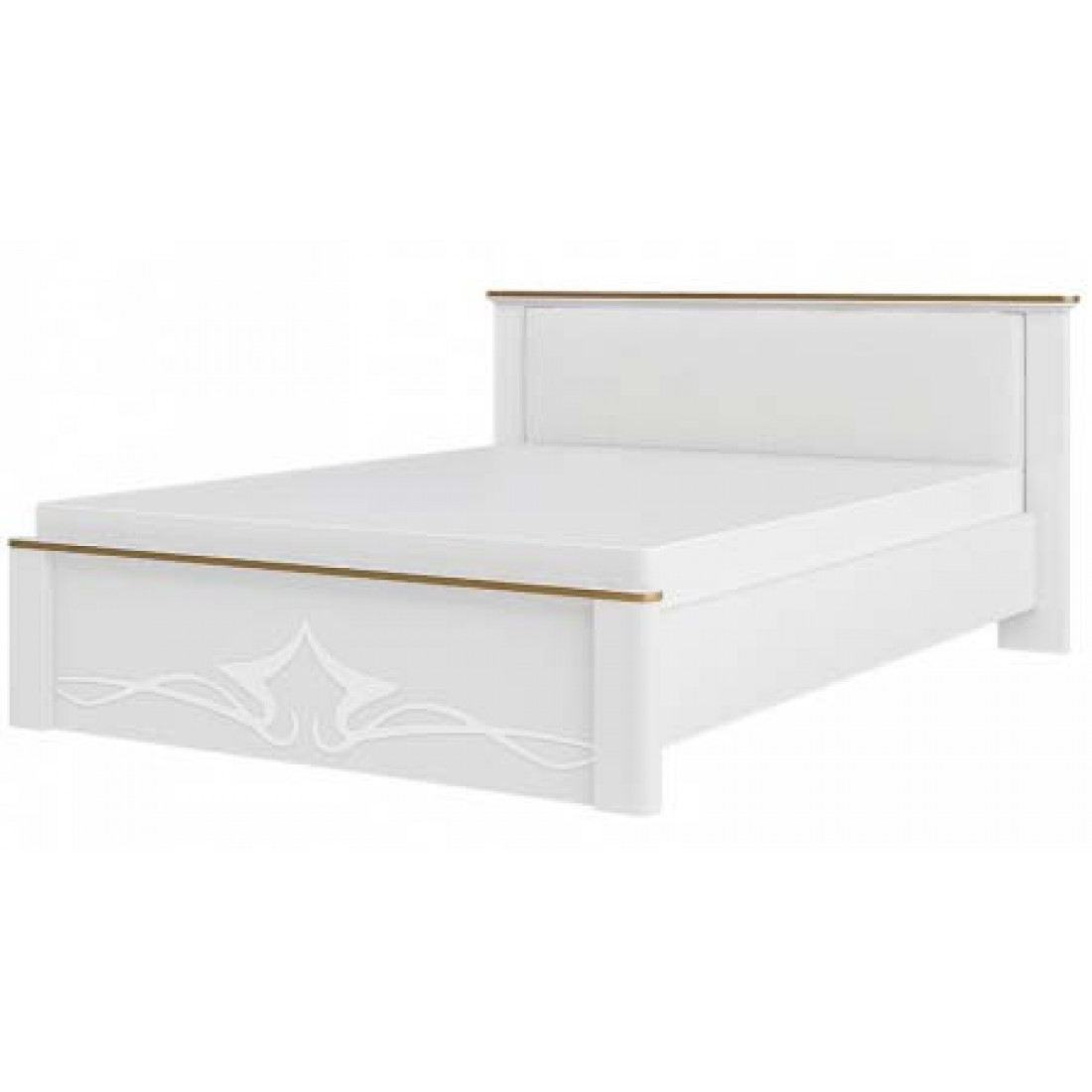 Двуспальная кровать Либерти МН-313-01 с мягким изголовьем и декоративными элементами в современном стиле. Светлые тона, эксклюзивное дизайнерское оформление, все это выглядит как уникальное решение для комнаты отдыха.