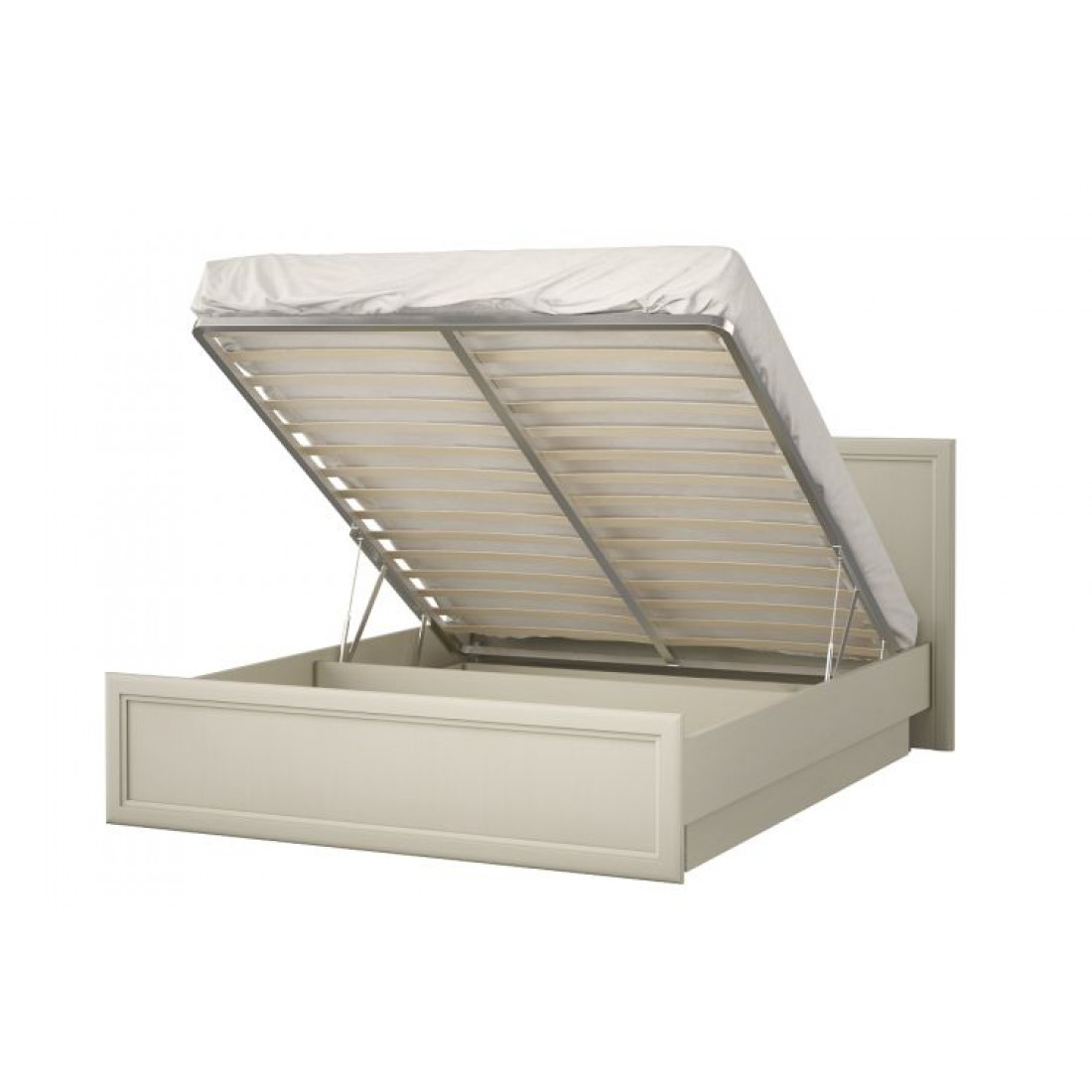 - В комплект кровати входит ортопедическое основание, состоящее из металлического каркаса и березовых ламелей, подъемный механизм.
