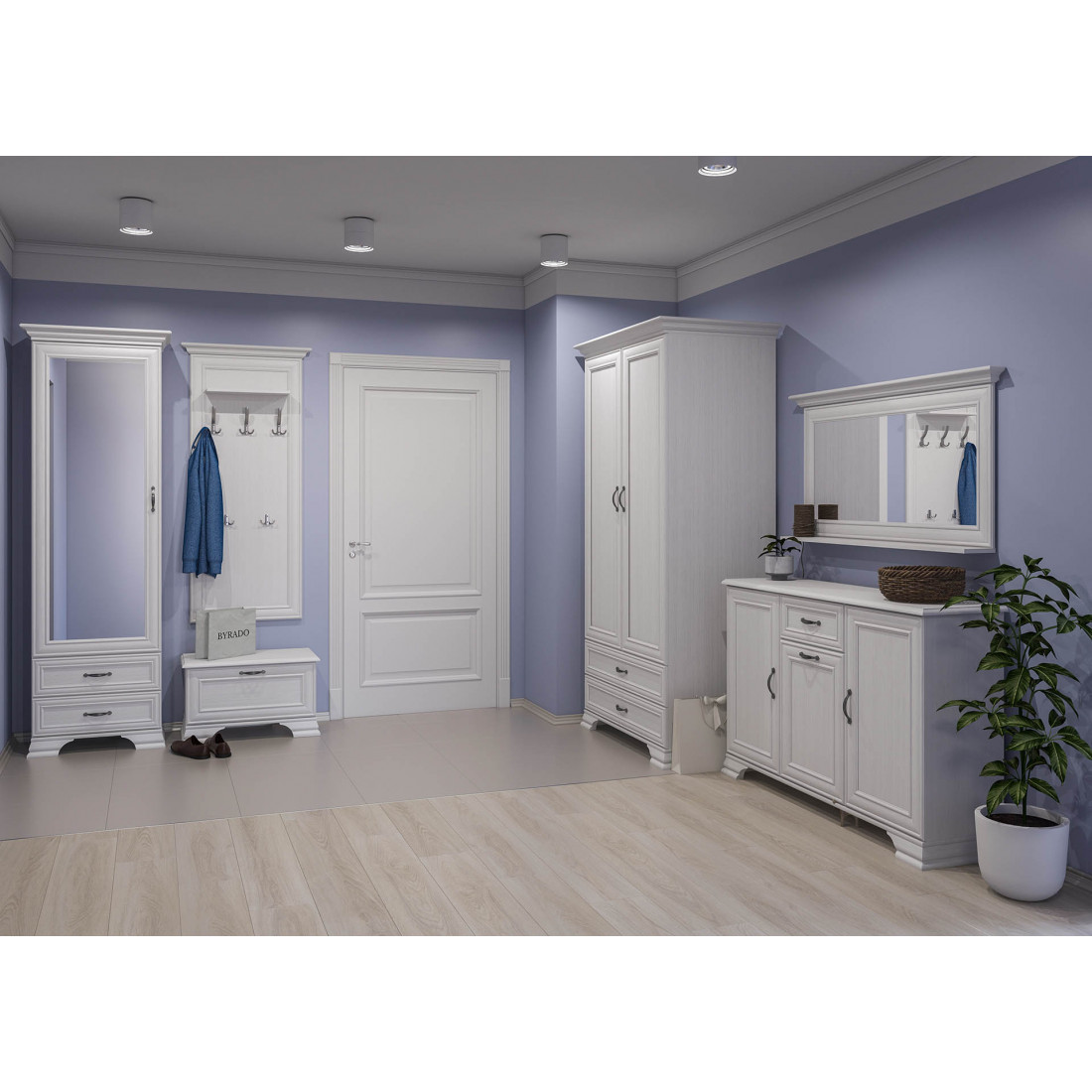 Мебель для прихожей Юнона от фабрики Мебель-Неман композиция 3 - новинка 2019 года в классическом стиле с отделкой структурной фактуры, обрамленная рамочным фасадом, где металлические ручки выгодно подчёркивают стиль и изящество, всегда актуален и востребован.