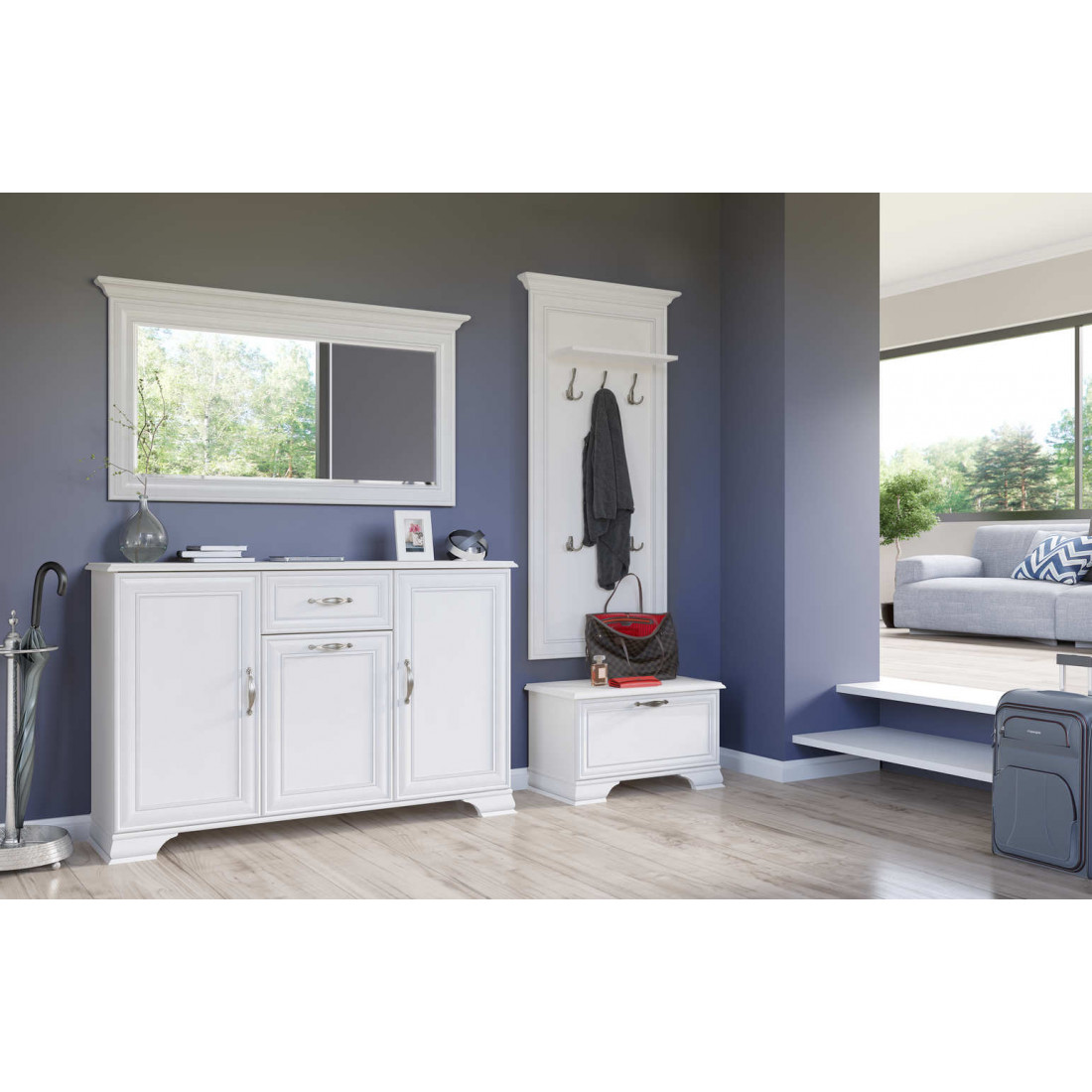 - Возможность обустройства прихожей, используя тумбы под обувь 1D или 3D, вешалку L, тумбы с выдвижным ящиком 2D1S или 1D1S с соответствующими им по размеру зеркалами.
