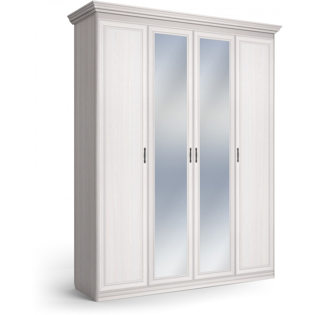 Шкаф 4-х дверный зеркальный Неаполь Ясень анкор светлый (патина "серебро")